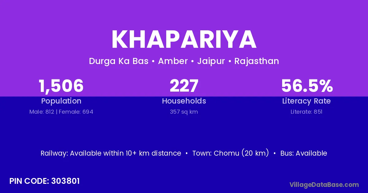 Nasvadi (10 km) is the nearest town to Khapariya village for major economic activities and is located approximately 10 km away.