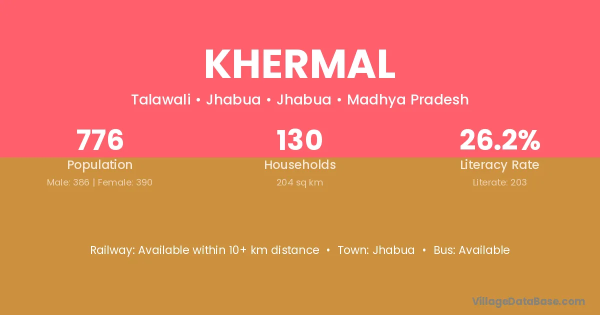 Nasvadi (32 km) is the nearest town to Khermal village for major economic activities and is located approximately 32 km away.