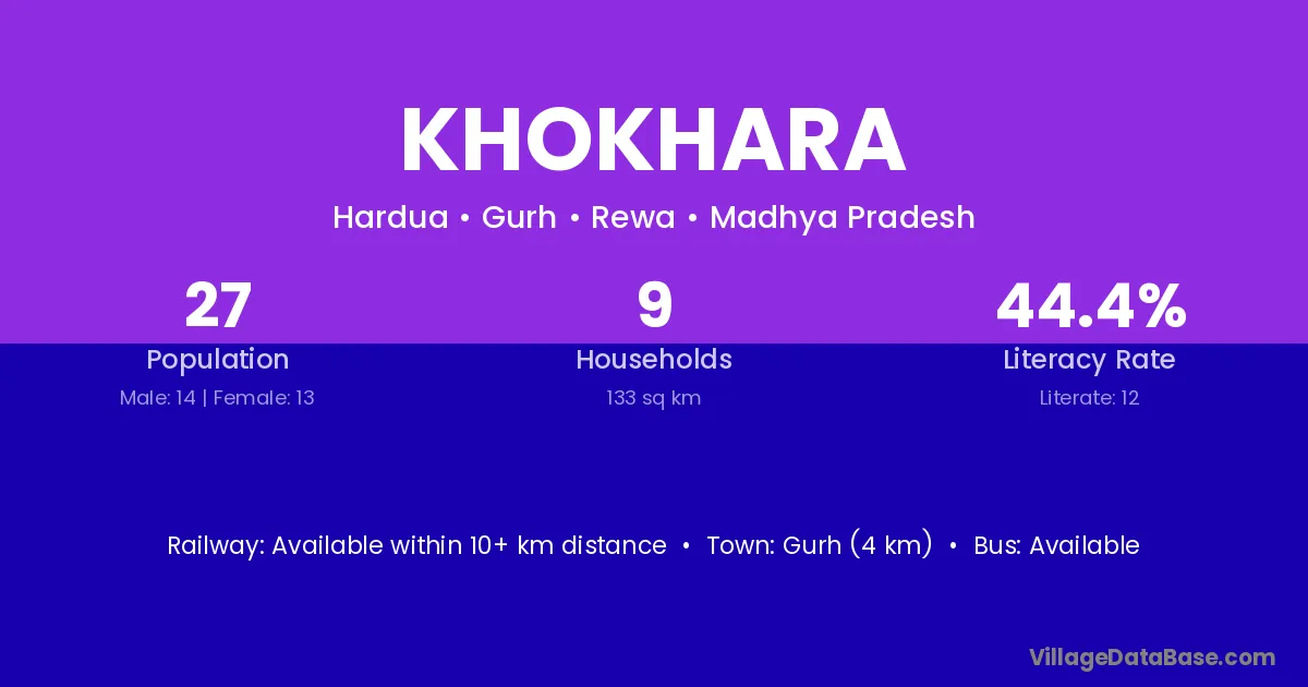 Nasvadi (17 km) is the nearest town to Khokhara village for major economic activities and is located approximately 17 km away.