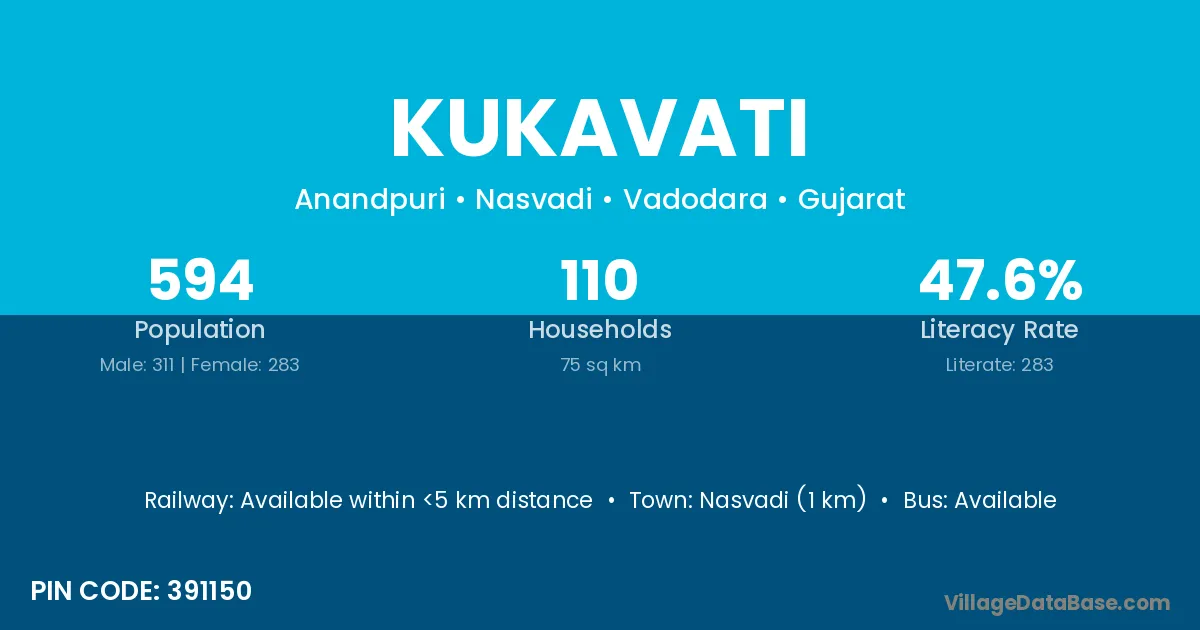 Nasvadi (1 km) is the nearest town to Kukavati village for major economic activities and is located approximately 1 km away.