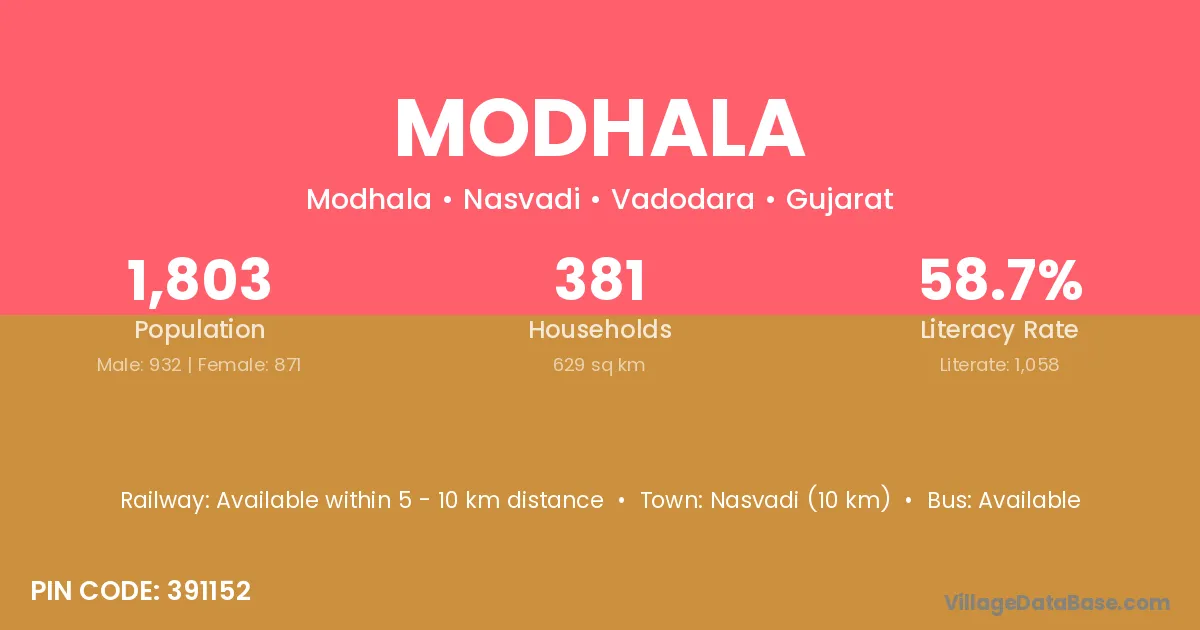 According to Census 2011 information, the village code of Modhala village is 391152.