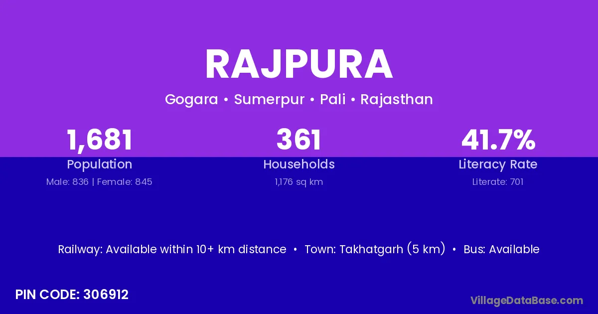 Nasvadi (12 km) is the nearest town to Rajpura village for major economic activities and is located approximately 12 km away.