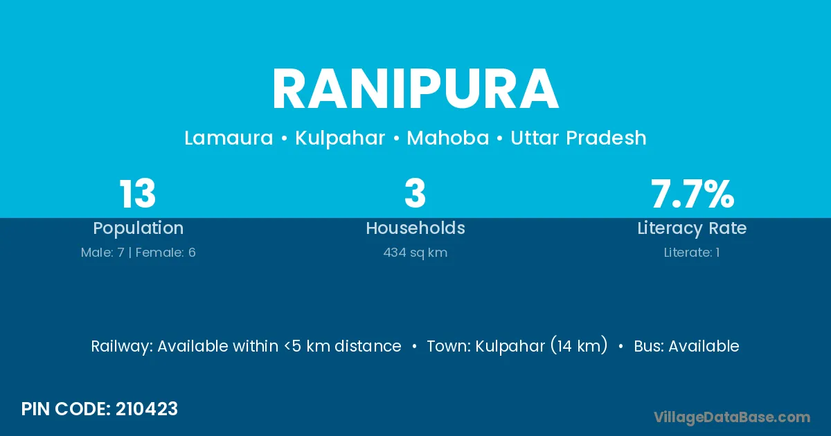 Ranipura village has a total population of 720 people, of which 361 are males and 359 are females.