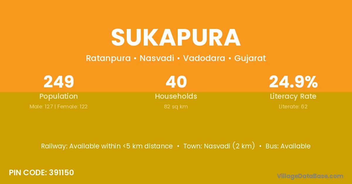 Nasvadi (2 km) is the nearest town to Sukapura village for major economic activities and is located approximately 2 km away.
