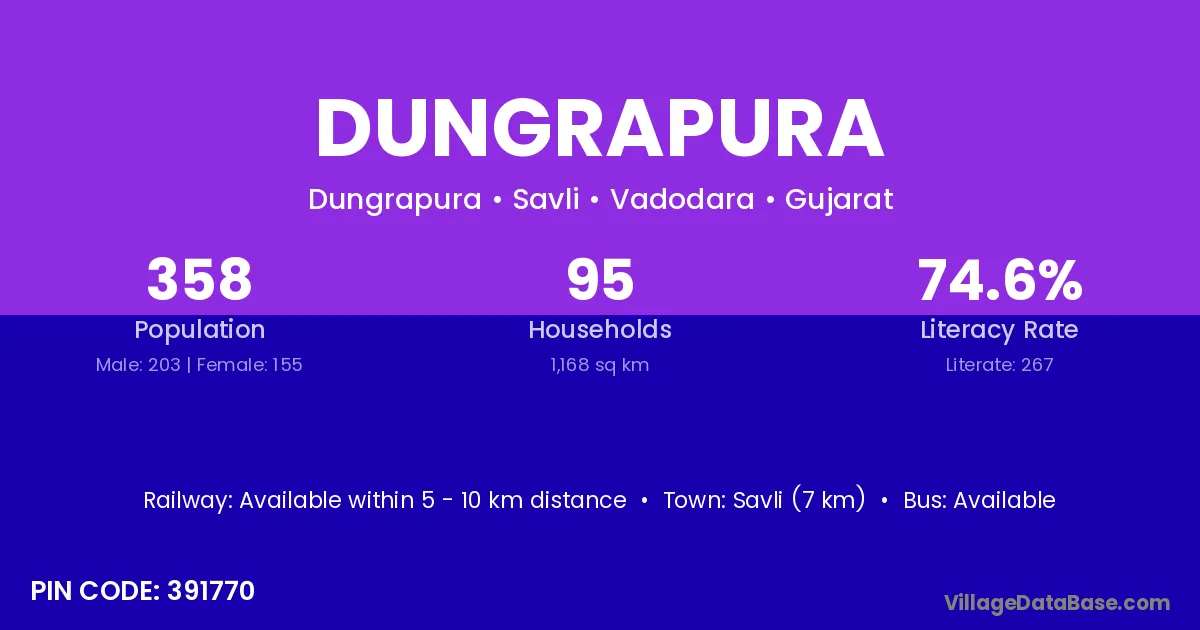 Savli (7 km) is the nearest town to Dungrapura village for major economic activities and is located approximately 7 km away.