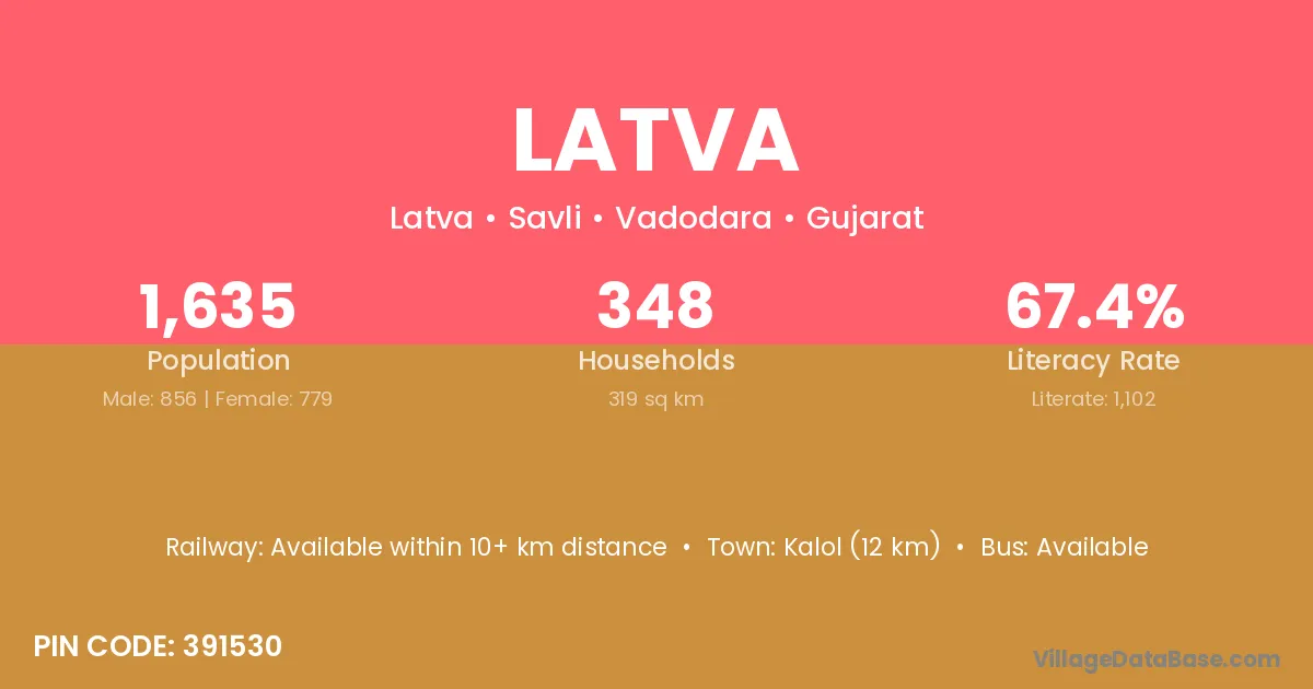 Kalol (12 km) is the nearest town to Latva village for major economic activities and is located approximately 12 km away.