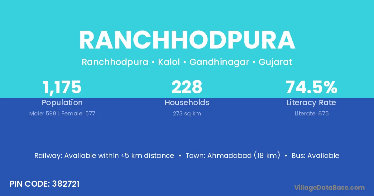 Savli (7 km) is the nearest town to Ranchhodpura village for major economic activities and is located approximately 7 km away.