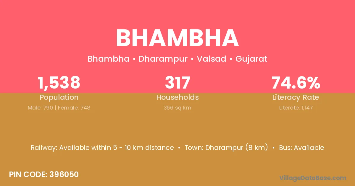 According to Census 2011 information, the village code of Bhambha village is 396050.