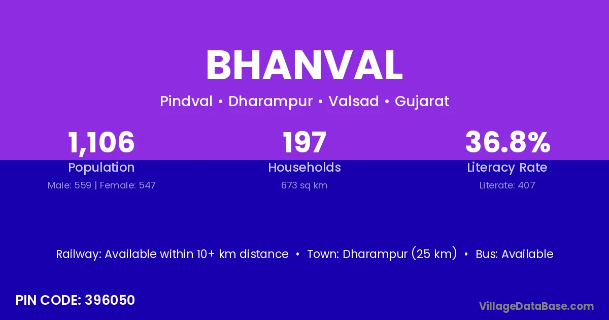 According to Census 2011 information, the village code of Bhanval village is 396050.