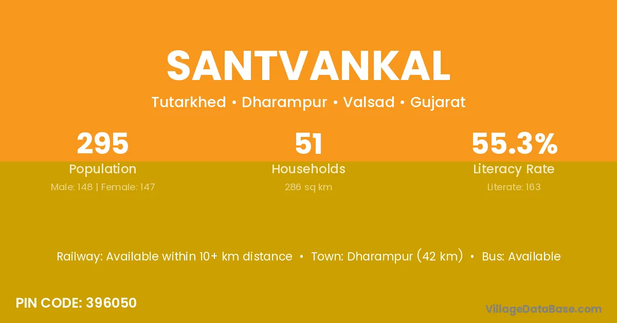 Dharampur (42 km) is the nearest town to Santvankal village for major economic activities and is located approximately 42 km away.