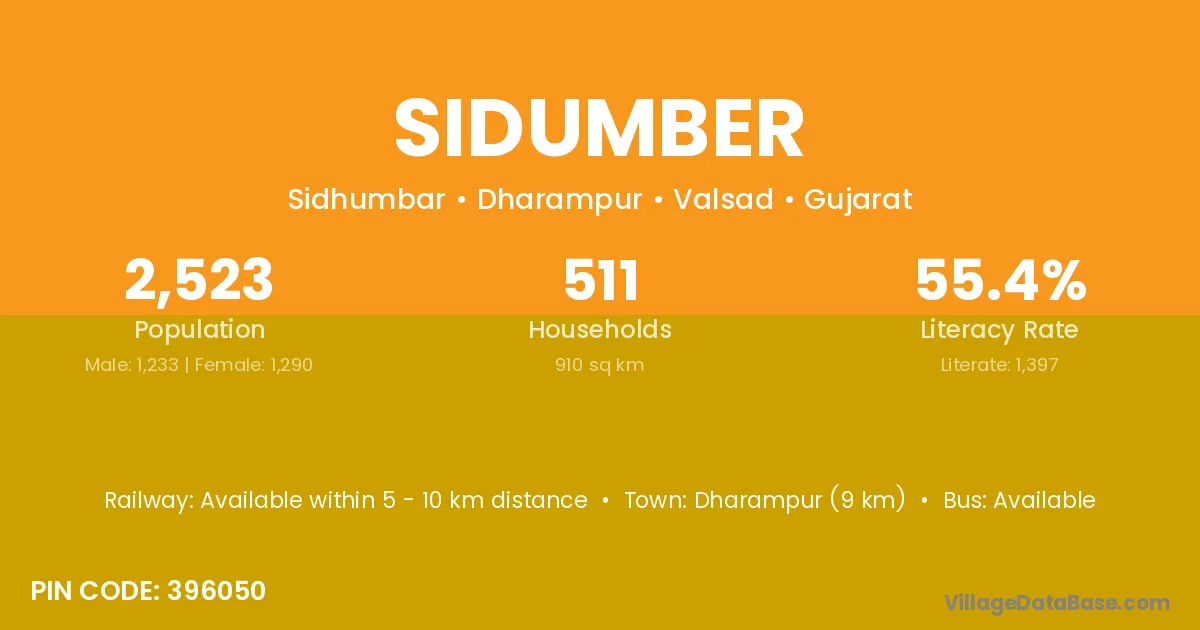 Dharampur (9 km) is the nearest town to Sidumber village for major economic activities and is located approximately 9 km away.