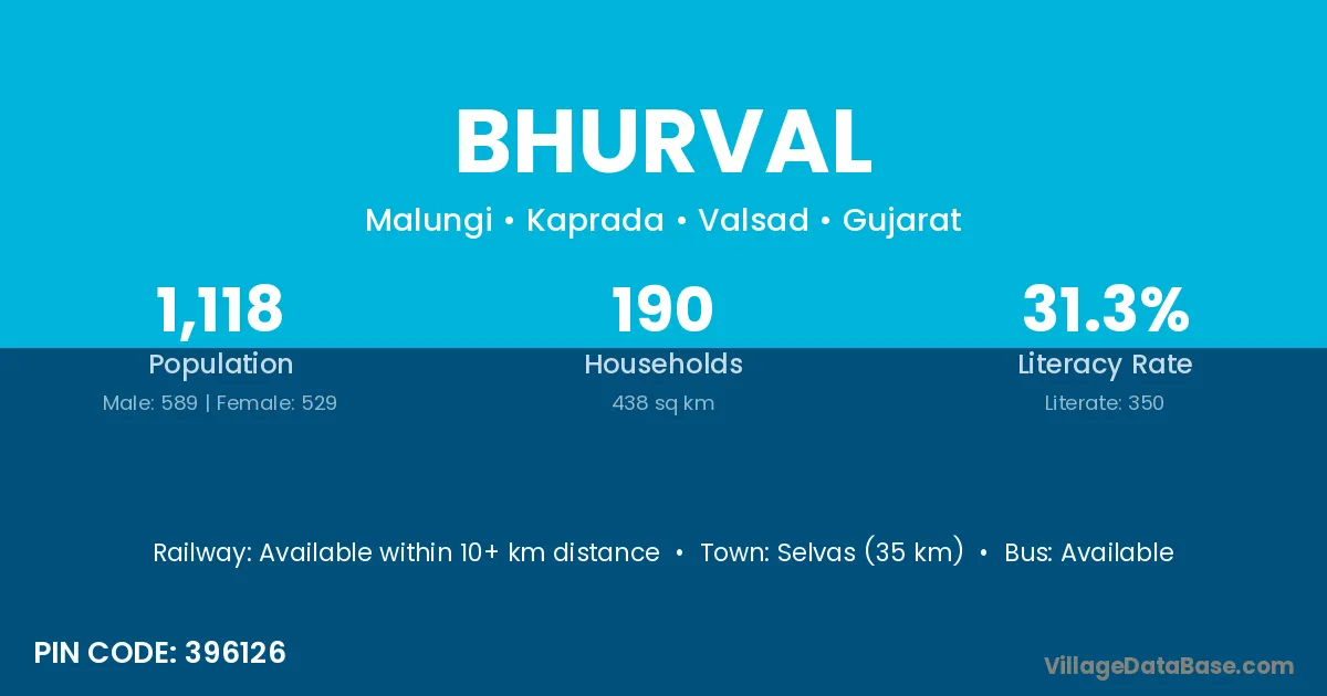 According to Census 2011 information, the village code of Bhurval village is 396126.