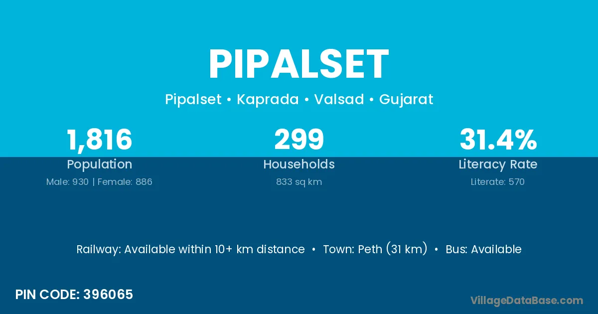 According to Census 2011 information, the village code of Pipalset village is 396065.