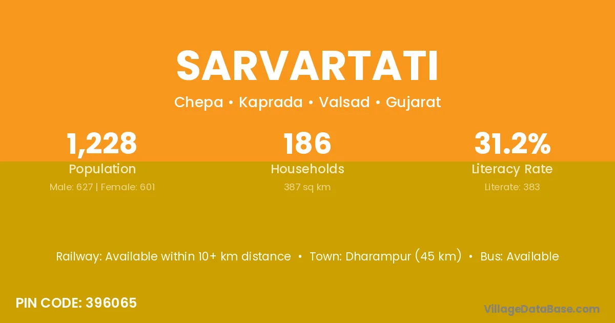 According to Census 2011 information, the village code of Sarvartati village is 396065.
