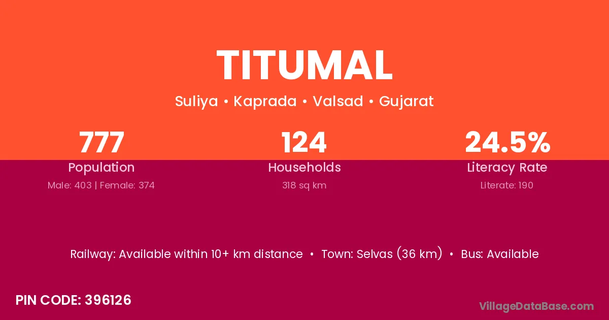 According to Census 2011 information, the village code of Titumal village is 396126.