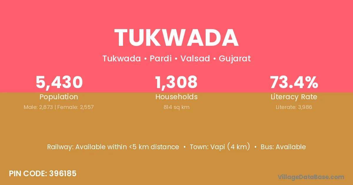 Vapi (4 km) is the nearest town to Tukwada village for major economic activities and is located approximately 4 km away.