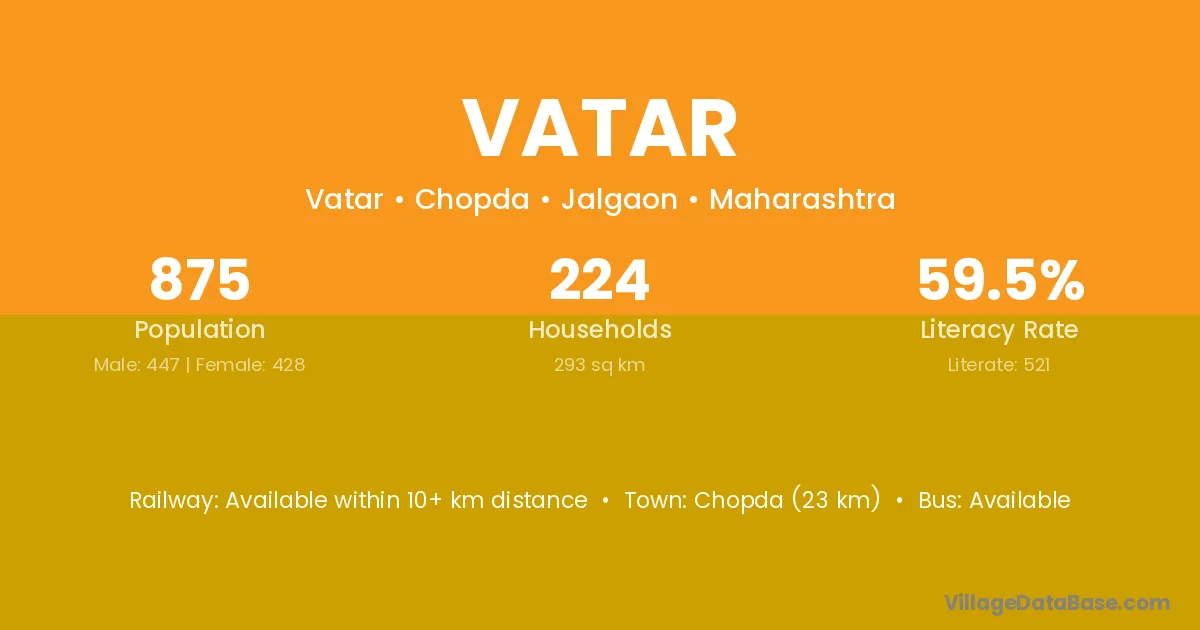 Pardi (15 km) is the nearest town to Vatar village for major economic activities and is located approximately 15 km away.