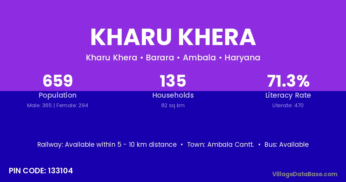 Ambala Cantt. is the nearest town to Kharu Khera village for major economic activities