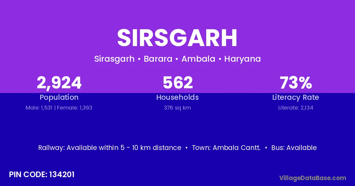 Ambala Cantt. is the nearest town to Sirsgarh village for major economic activities