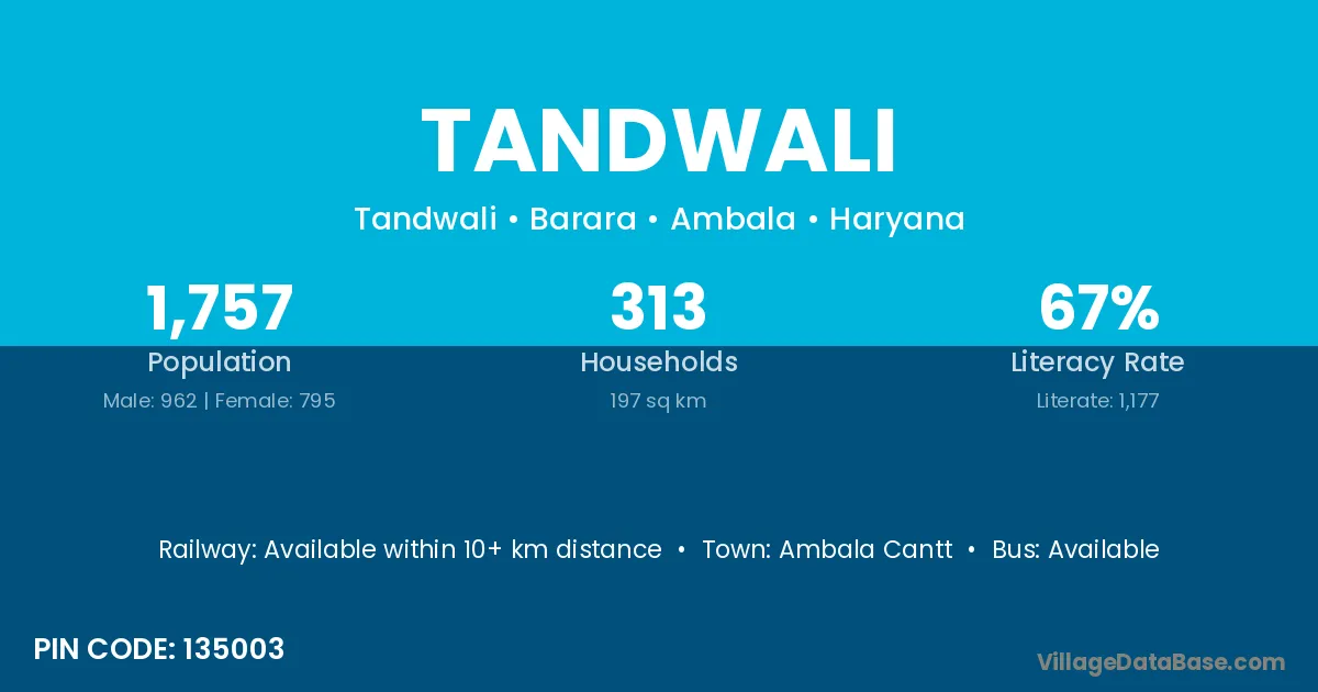 According to Census 2011 information, the village code of Tandwali village is 135003.