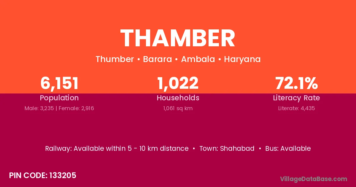 According to Census 2011 information, the village code of Thamber village is 133205.