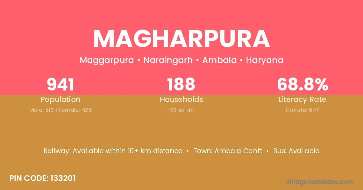 Ambala Cantt is the nearest town to Magharpura village for major economic activities