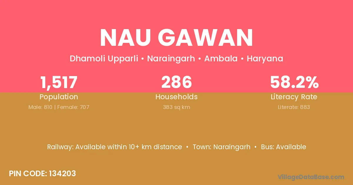 Nau Gawan village has a total population of 1,517 people, of which 810 are males and 707 are females.