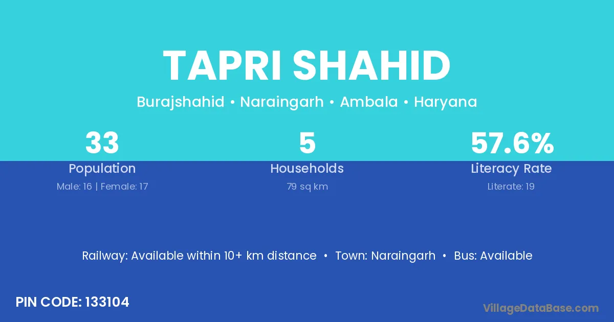 Tapri Shahid village has a total population of 33 people, of which 16 are males and 17 are females.