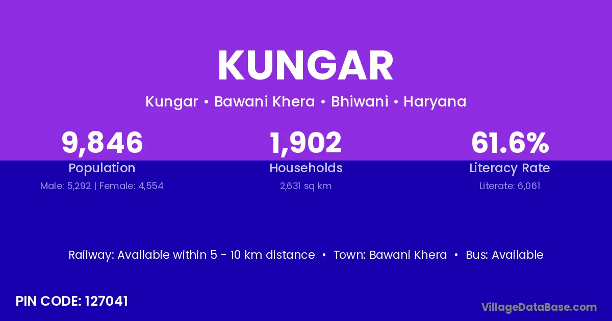 Bawani Khera is the nearest town to Kungar village for major economic activities