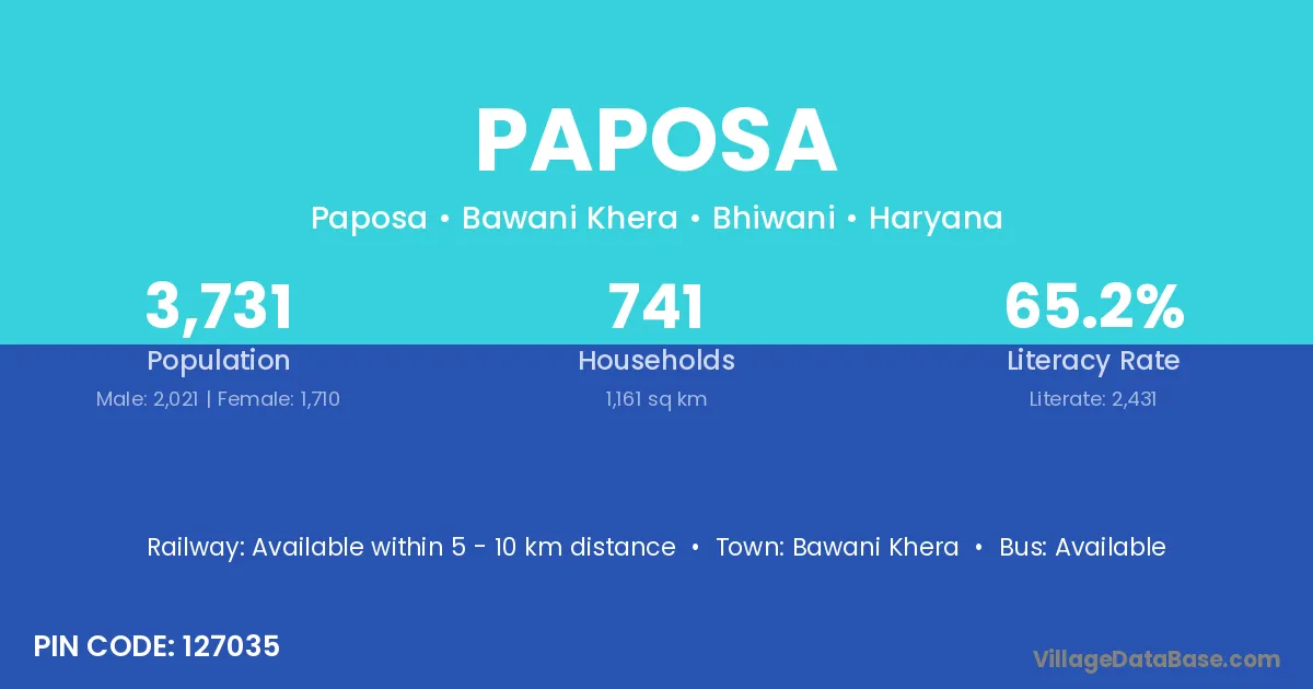 Bawani Khera is the nearest town to Paposa village for major economic activities