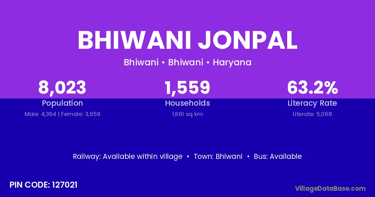 Bhiwani Jonpal village has a total population of 8,023 people, of which 4,364 are males and 3,659 are females.