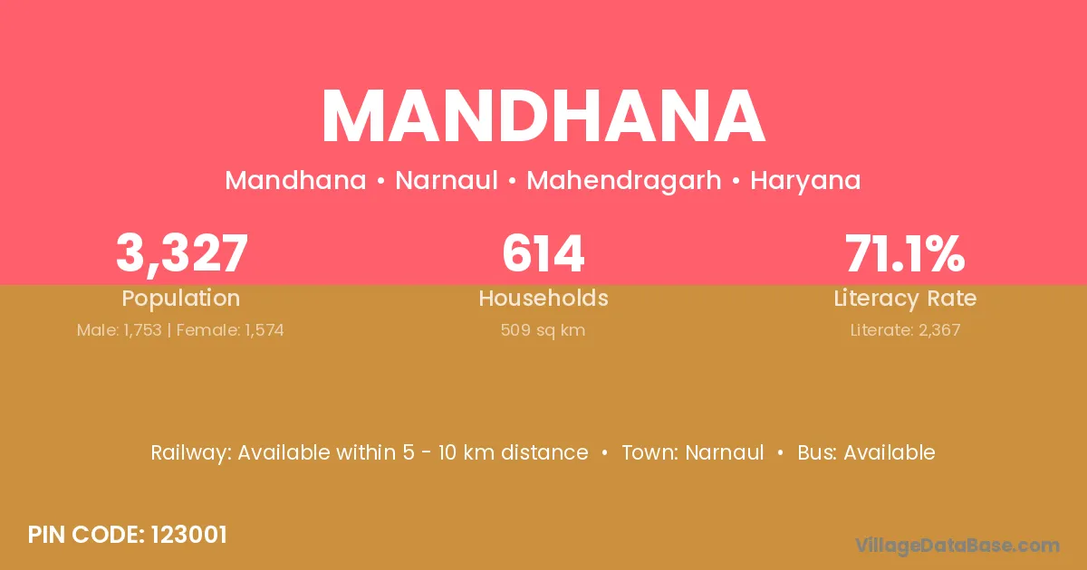 Mandhana village has a total population of 6,164 people, of which 3,305 are males and 2,859 are females.