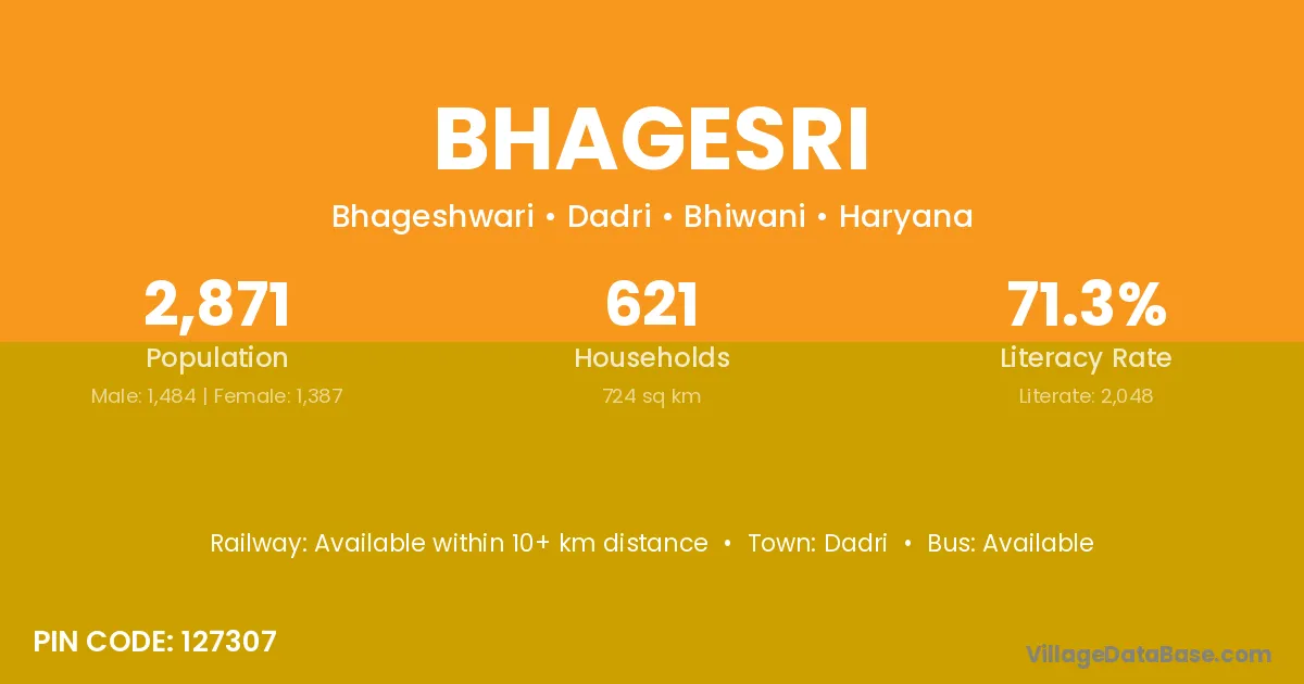 Bhagesri village has a total population of 2,871 people, of which 1,484 are males and 1,387 are females.