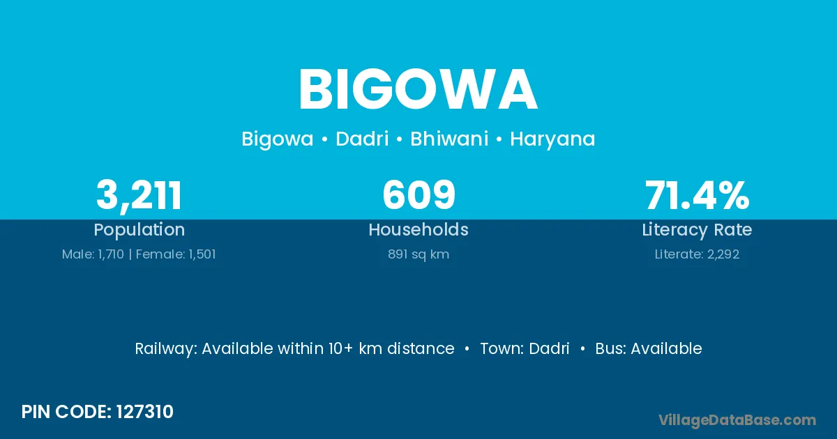 Bigowa village is located in the Dadri Tehsil of the Bhiwani district in Haryana .