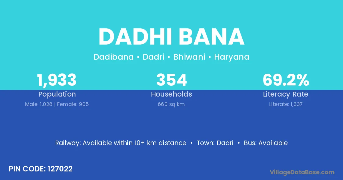 Dadri is the nearest town to Dadhi Bana village for major economic activities