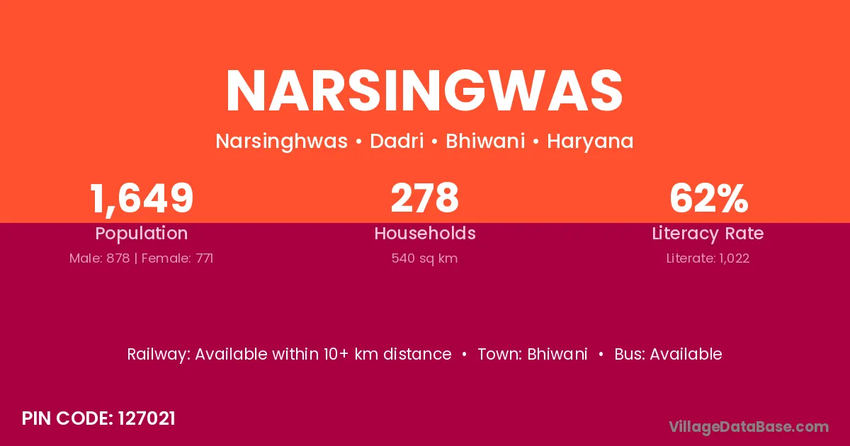 Narsingwas village has a total population of 1,649 people, of which 878 are males and 771 are females.