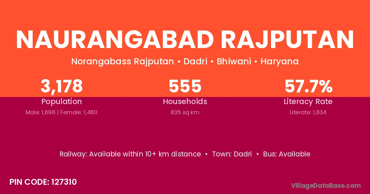 Naurangabad Rajputan village has a total population of 3,178 people, of which 1,698 are males and 1,480 are females.