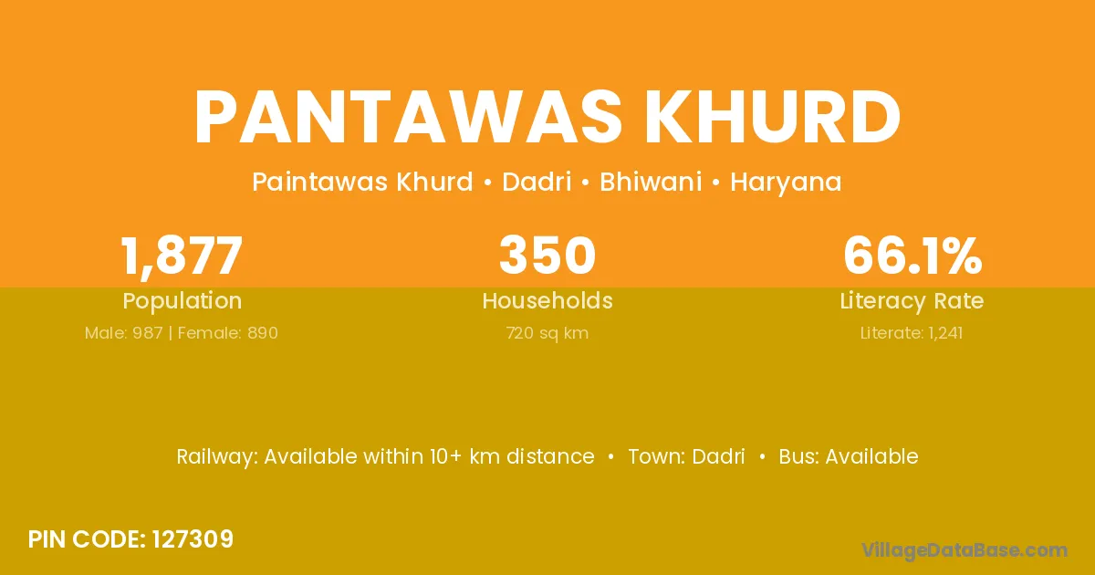 Pantawas Khurd village has a total population of 1,877 people, of which 987 are males and 890 are females.