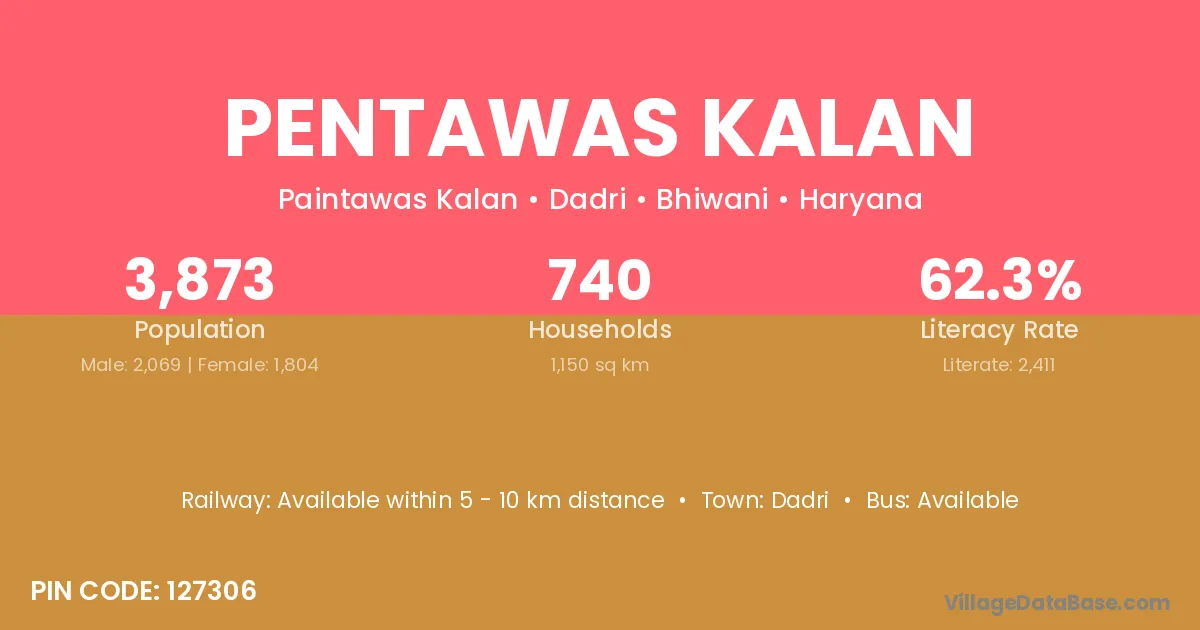 Pentawas Kalan village has a total population of 3,873 people, of which 2,069 are males and 1,804 are females.
