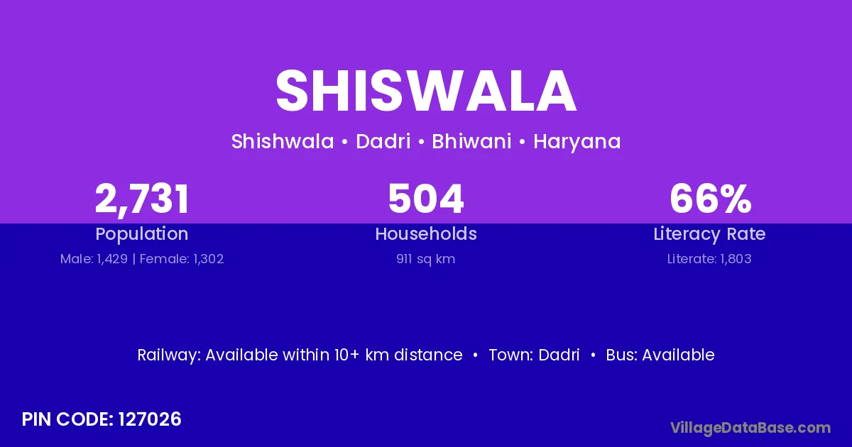 According to Census 2011 information, the village code of Shiswala village is 127026.
