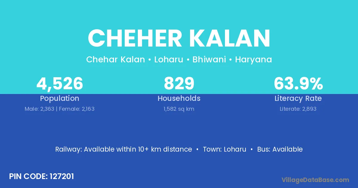 Loharu is the nearest town to Cheher Kalan village for major economic activities