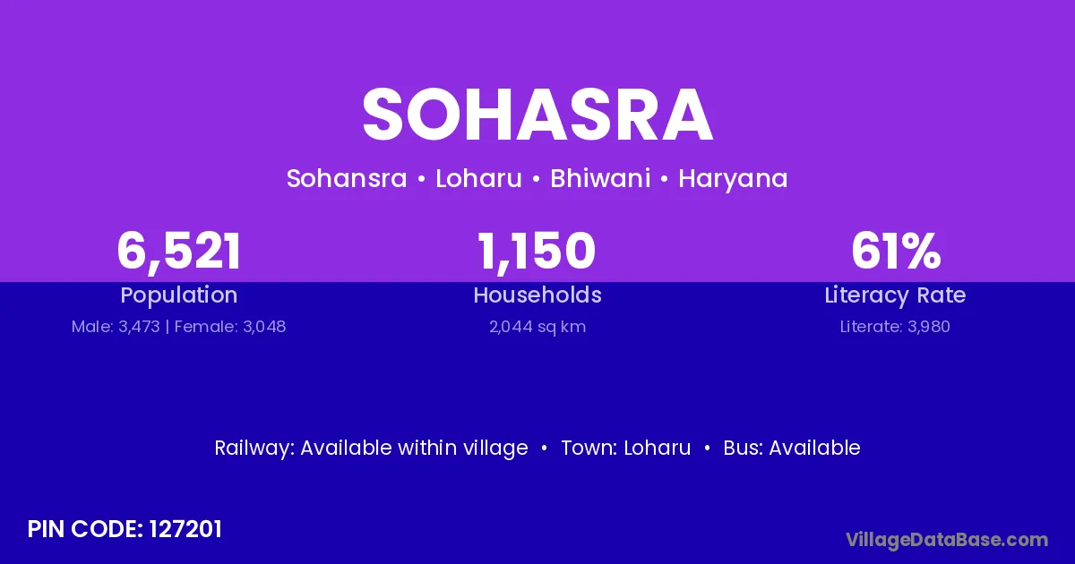 Loharu is the nearest town to Sohasra village for major economic activities