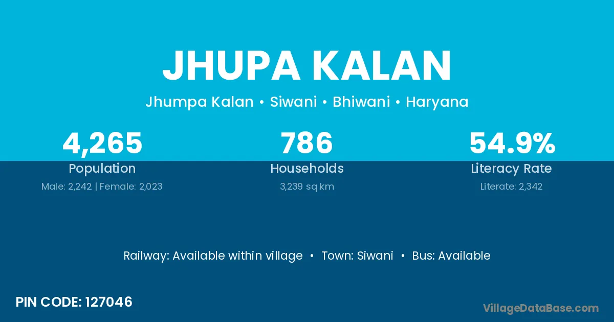 Jhupa Kalan village has a total population of 4,265 people, of which 2,242 are males and 2,023 are females.