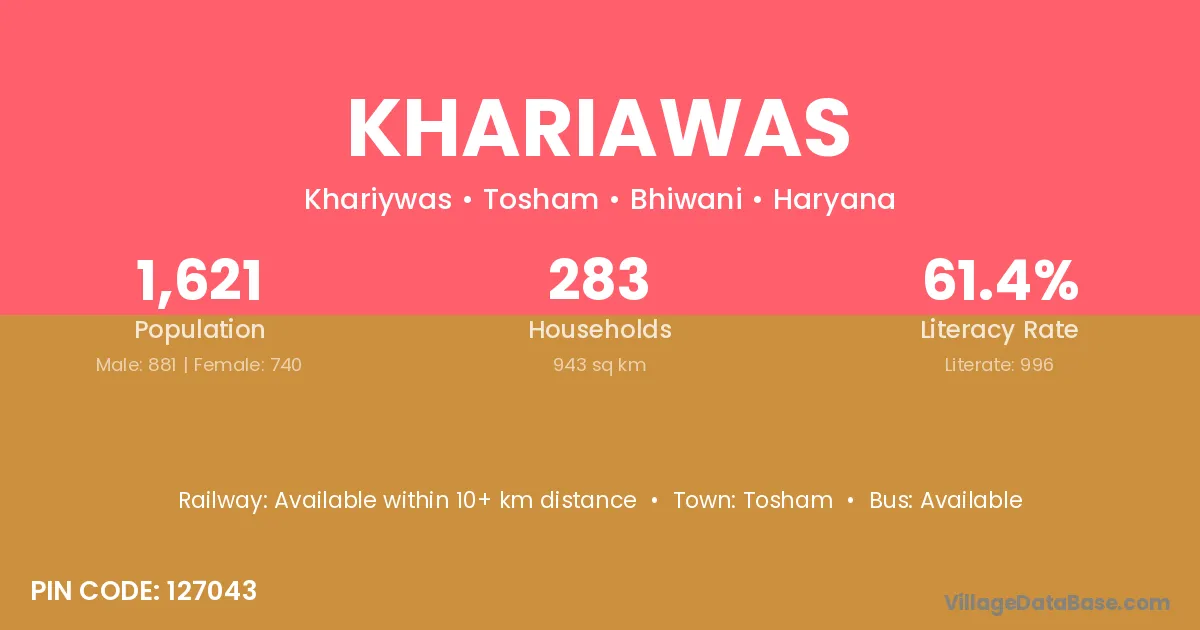 Khariawas village has a total population of 1,621 people, of which 881 are males and 740 are females.