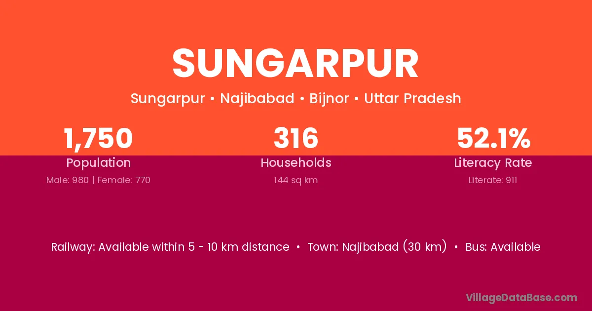 Sungarpur village has a total population of 3,380 people, of which 1,810 are males and 1,570 are females.