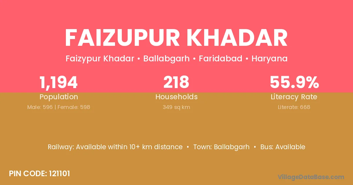Faizupur Khadar village has a total population of 1,194 people, of which 596 are males and 598 are females.