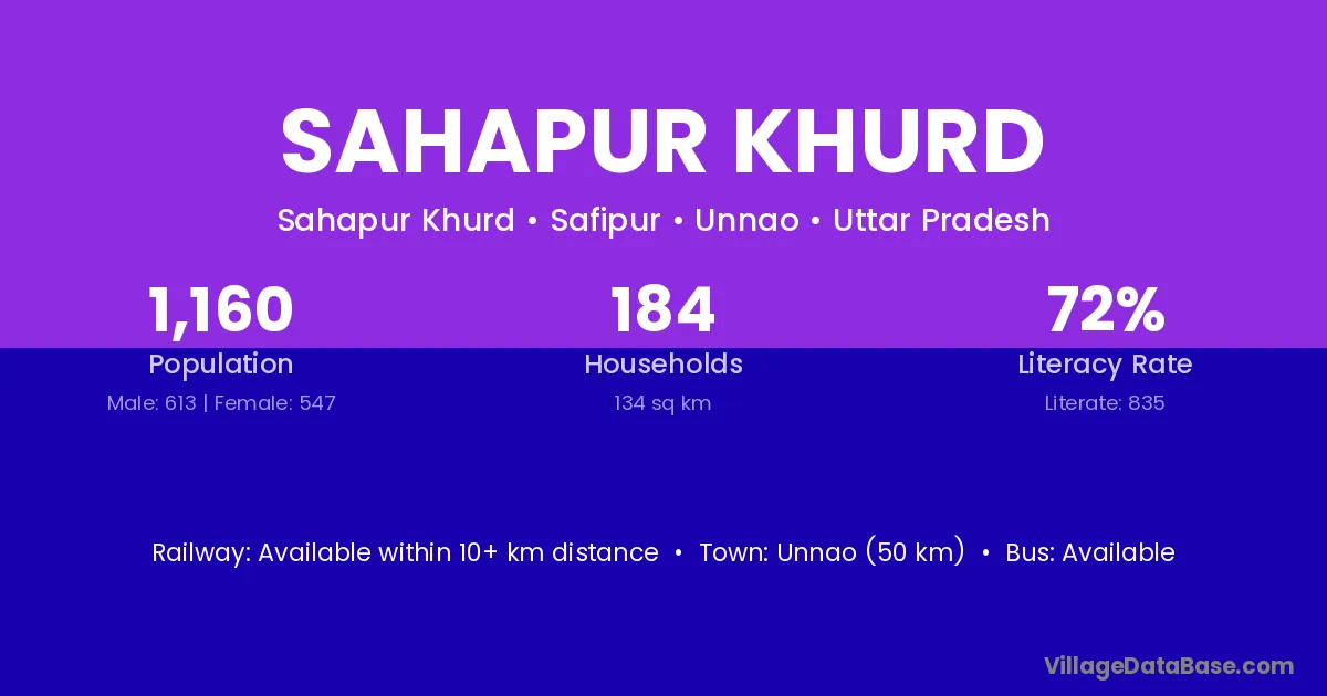 The literacy rate of Sahapur Khurd village is 64.44%. Male literacy stands at 77.65% and female literacy at 48.96%.