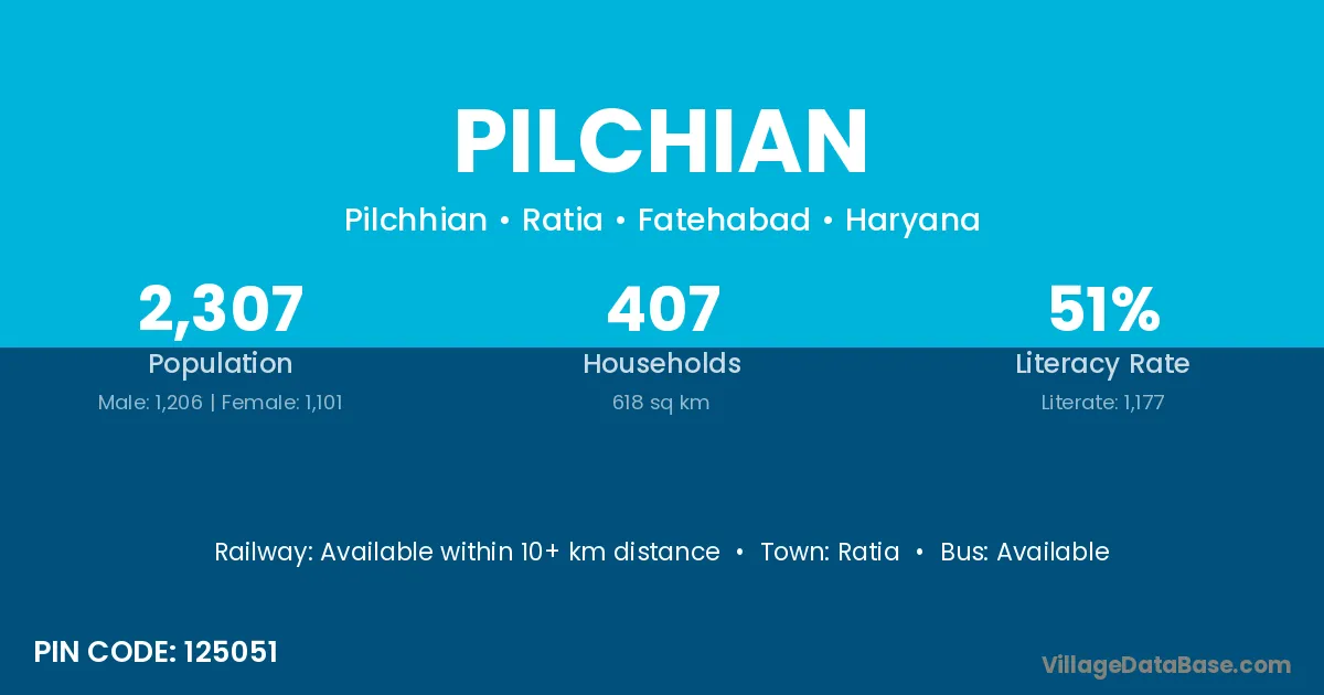 According to Census 2011 information, the village code of Pilchian village is 125051.