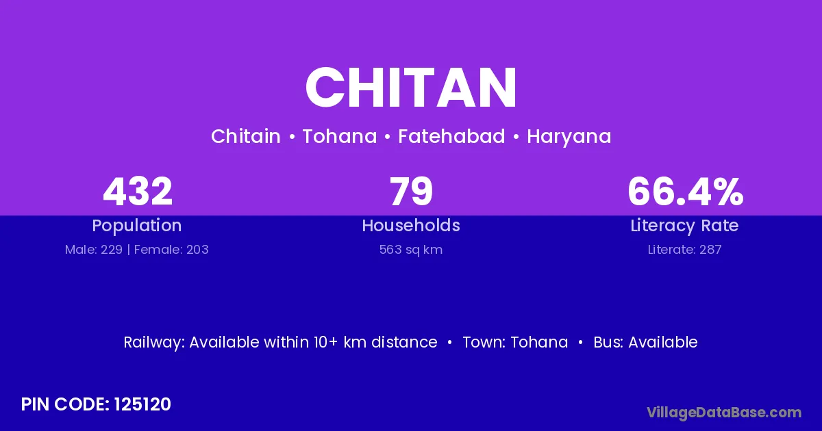 Tohana is the nearest town to Chitan village for major economic activities