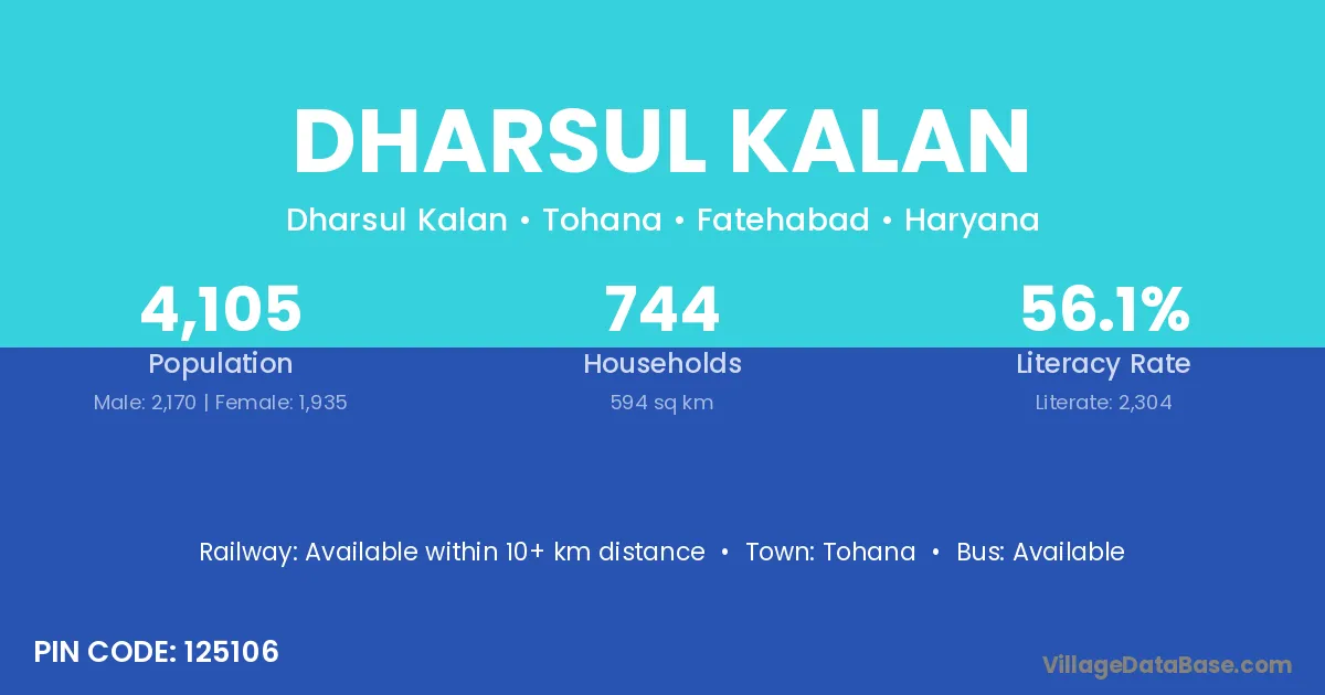 Tohana is the nearest town to Dharsul Kalan village for major economic activities